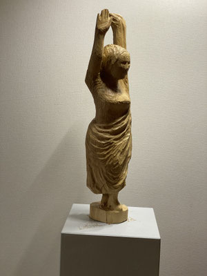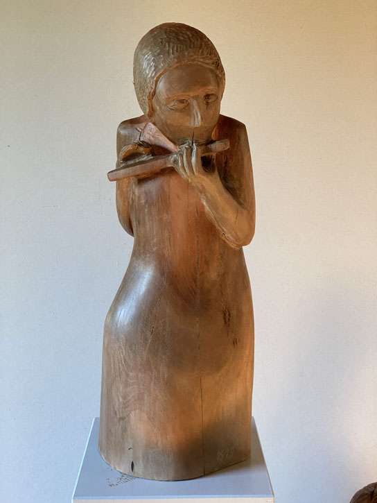 "Mann mit Flöte", 2025, Eukalyptusholz, 45 x 17 x 11 cm, 1200 €